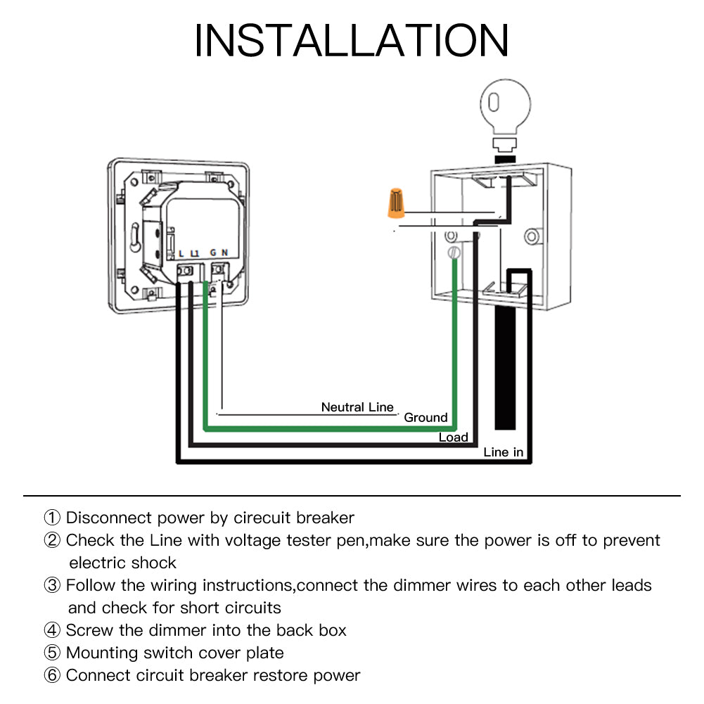 1.New designed with rotary operations to dim your light with adjustable supported;Brightness memory function when power off to smart your life in another concept;Compatible with various dimmable bulbs as 200W LED,CFL, 300W INC.Please install this switch near the electric box where there is Line Wire.