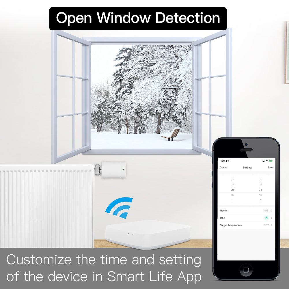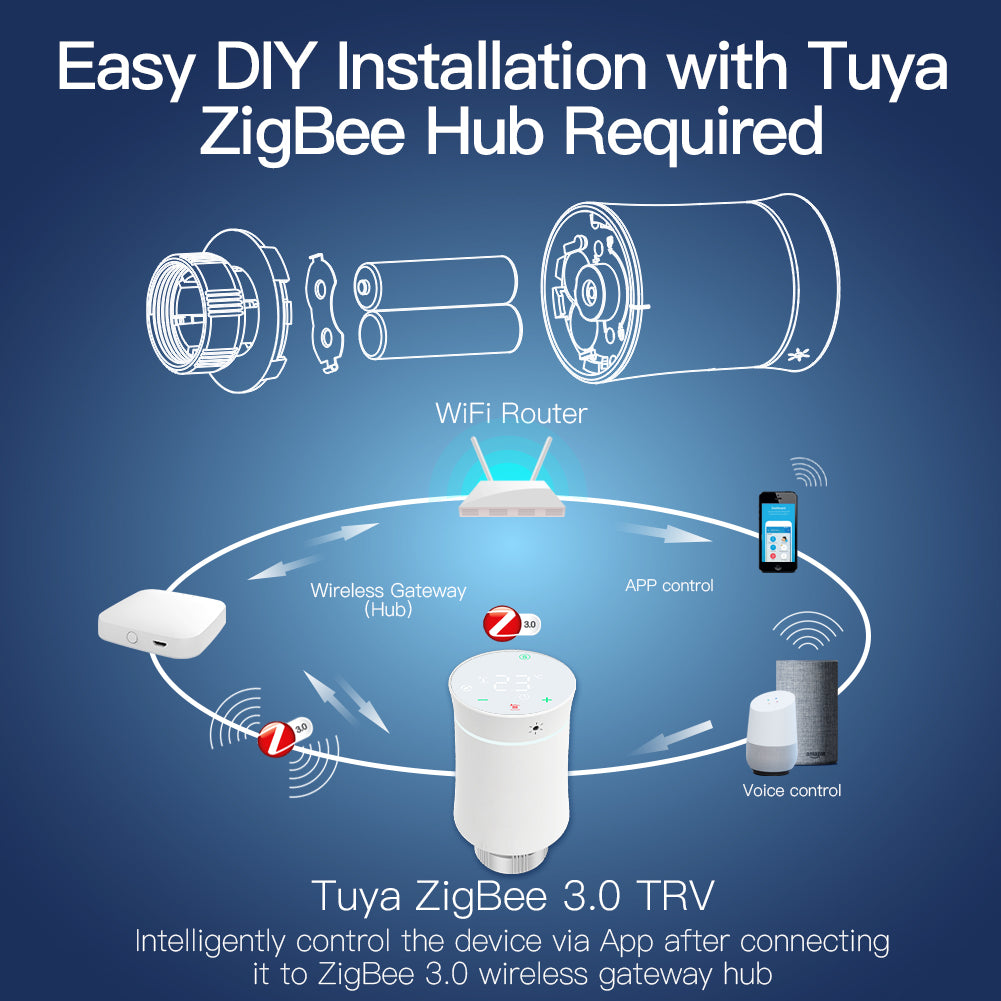 2.A Tuya ZigBee Wireless Gateway Hub is a Must : A ZigBee wireless hub is a must that connects to the valve many other ZigBee smart products and realizes the whole linkage of your smart home devices.Simply add your gateway to the App,then add your radiator actuator to your gateway in the Smart Life App,even smart automation to other smart devices in APP by creating various scenes for flexible controls on smart phones.