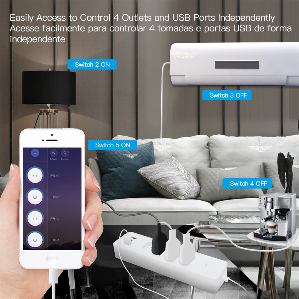 - Timer your schedule in Smart Life App for your fourconnected devices independently without interference under each outlets to preset its time for ON/OFF and even with countdown option for more flexible control;And a switch timer function for the 4 USB is also available for added convenience.