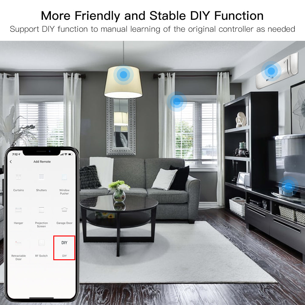 5.More Friendly and Stable DIY Function: Support DIY function to manual learning of the original controller as needed, solve your problem of finding a remote controller or the appliance model is not available on the app.Meanwhile,smart scene linkage is supported with four scenes available in Smart Life App for creating smart scenes with other smart devices;includes full 2-year warranty and 60-day refund guarantee for complete satisfaction.