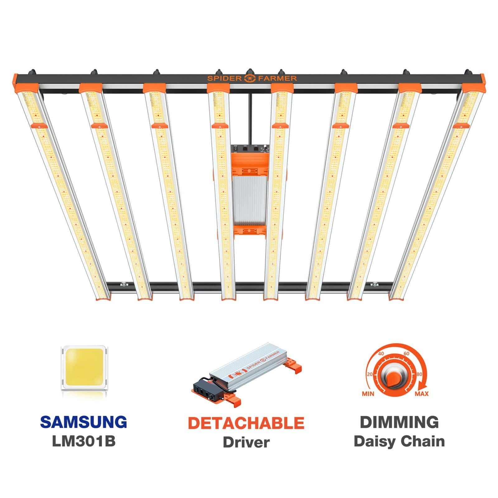 REMOVABLE DRIVER&GOOD DISSIPATION: The back-mounted aluminium heat sink and bar-style grow lamp design improve airflow and effectively dissipate heat. The SE7000 plant growth light has a 6.56-foot power chord and removable driver, which decreases ambient heat in the growing area and increases the life of the grow light. The waterproof coating on the LED diodes means you don’t have to be concerned about wet situations.