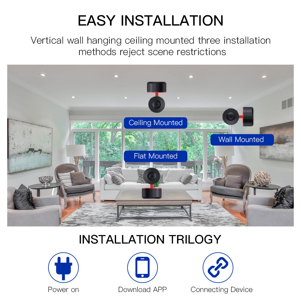 1.Tuya Smart Indoor IP Camera:Tuya Smart Camera provides a clear and complete overview, as well as Tuya Smart Life App smart control of your house anywhere you like.Easily plug charged without the worry about battery off.Enjoy most smart features of Tuya Smart Life App.