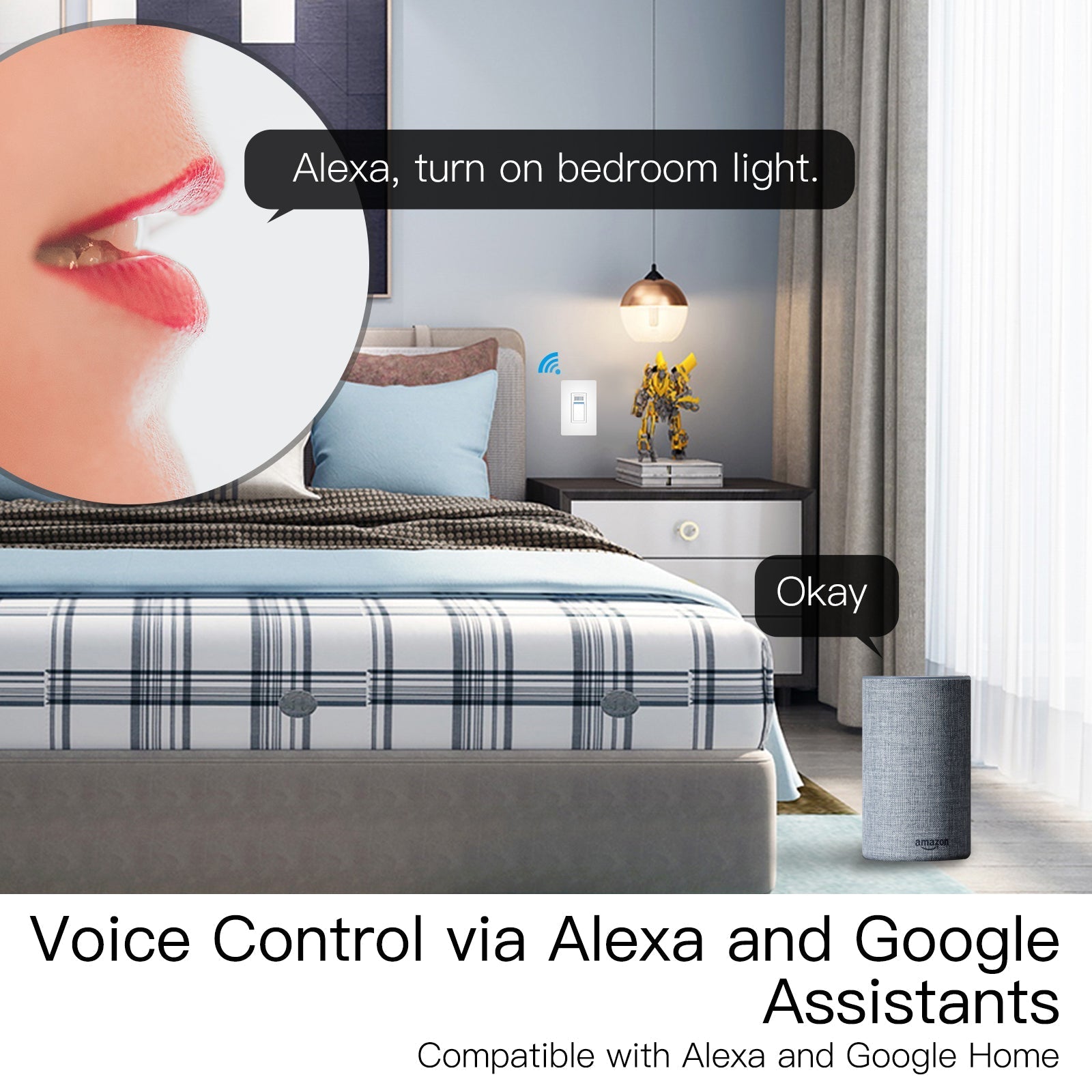 - Smart Light for Intelligence: Enjoy the hands-free convenience of voice control of the lights in your home by Amazon Alexa or Google Assistant.Also the timer function to set your smart switch to automatically turn on and off at a preset time while you're home or away.