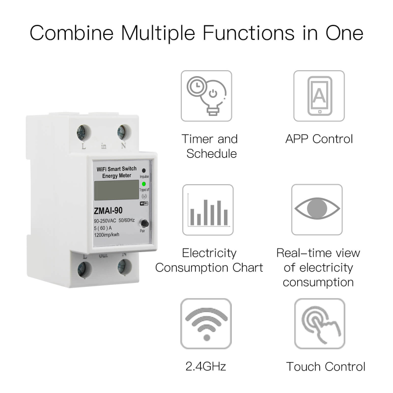 1.WiFi Smart Energy Meter Switch:High quality chip for accurate current measurement,providing your connected household appliances real-time view of electricity consumption.No more need to monitor via the meter itself and simply control the whole devices via Smart Life/Tuya App.(Note:This meter only supports 2.4G Wireless Network, NOT for 5G.)