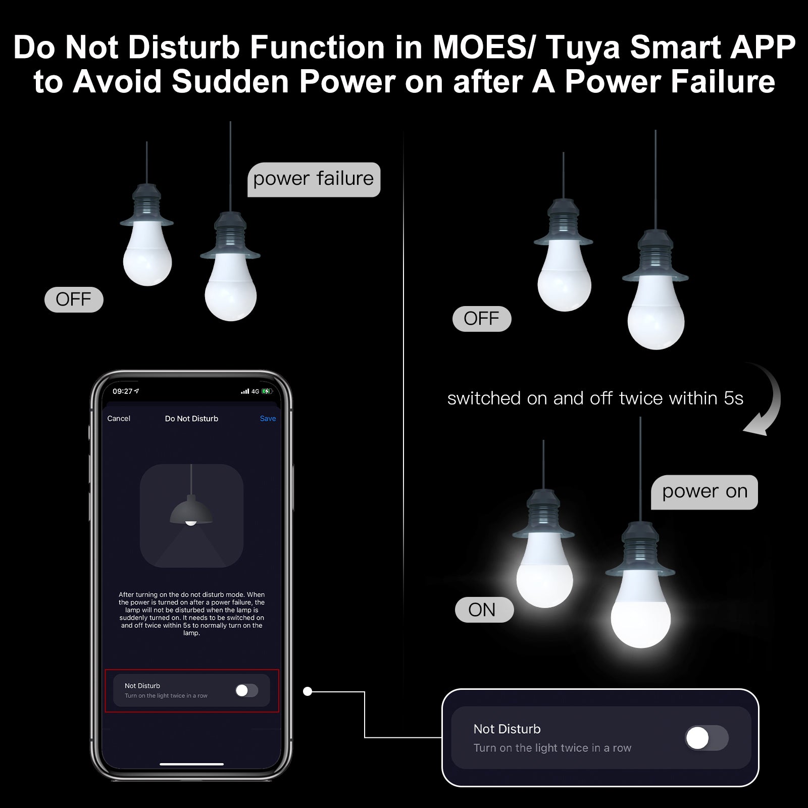 Timing with Sleep and Wake-up Lighting:Add flexible schedule for flexible timer control on usual room lighting,even with sleep and wake-up lighting optional to fade out or fade in after the time period you choose.Besides,there is the Do Not Disturb function in LumiMuse APP to avoid sudden power on after a power failure.